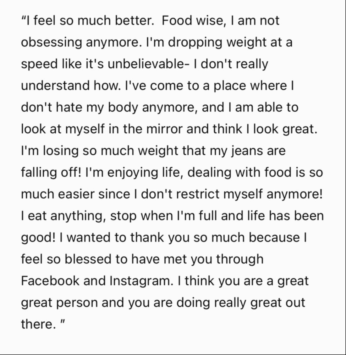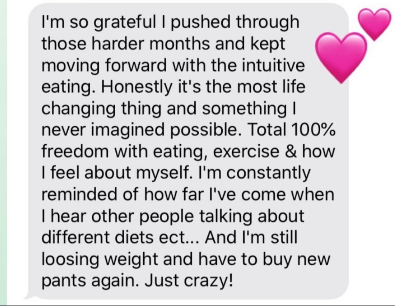 This is where you come to fast track your results, and never let food or body thoughts clutter your brain space again- so you can move forward even more powerfully into your dream life with ease and clarity.