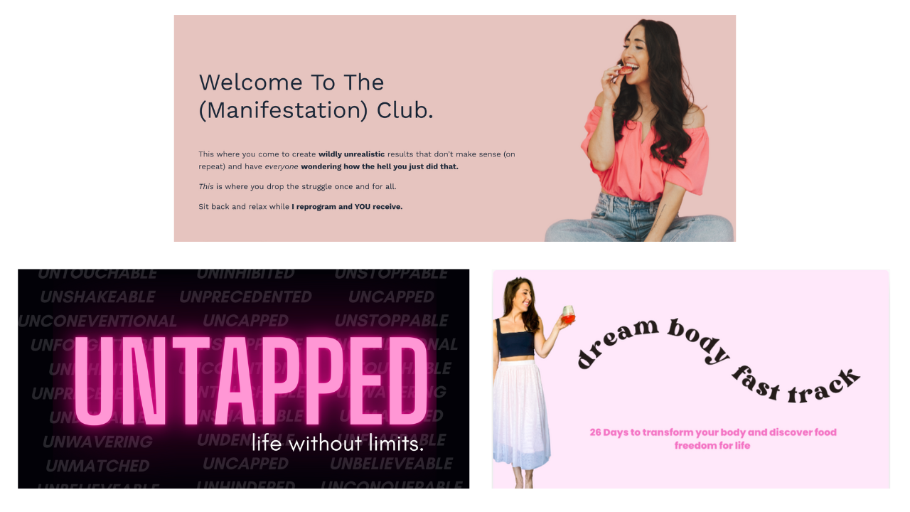 You get access to everything inside The Manifestation Club which means all the challenges, manifestation content for any result you desire- and personalized guidance throughout!